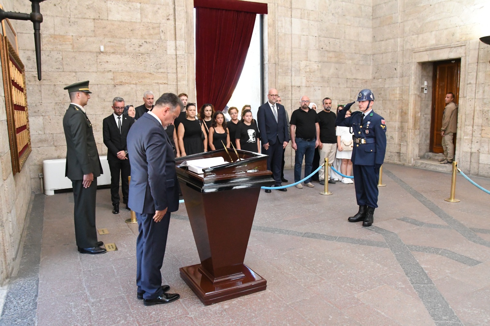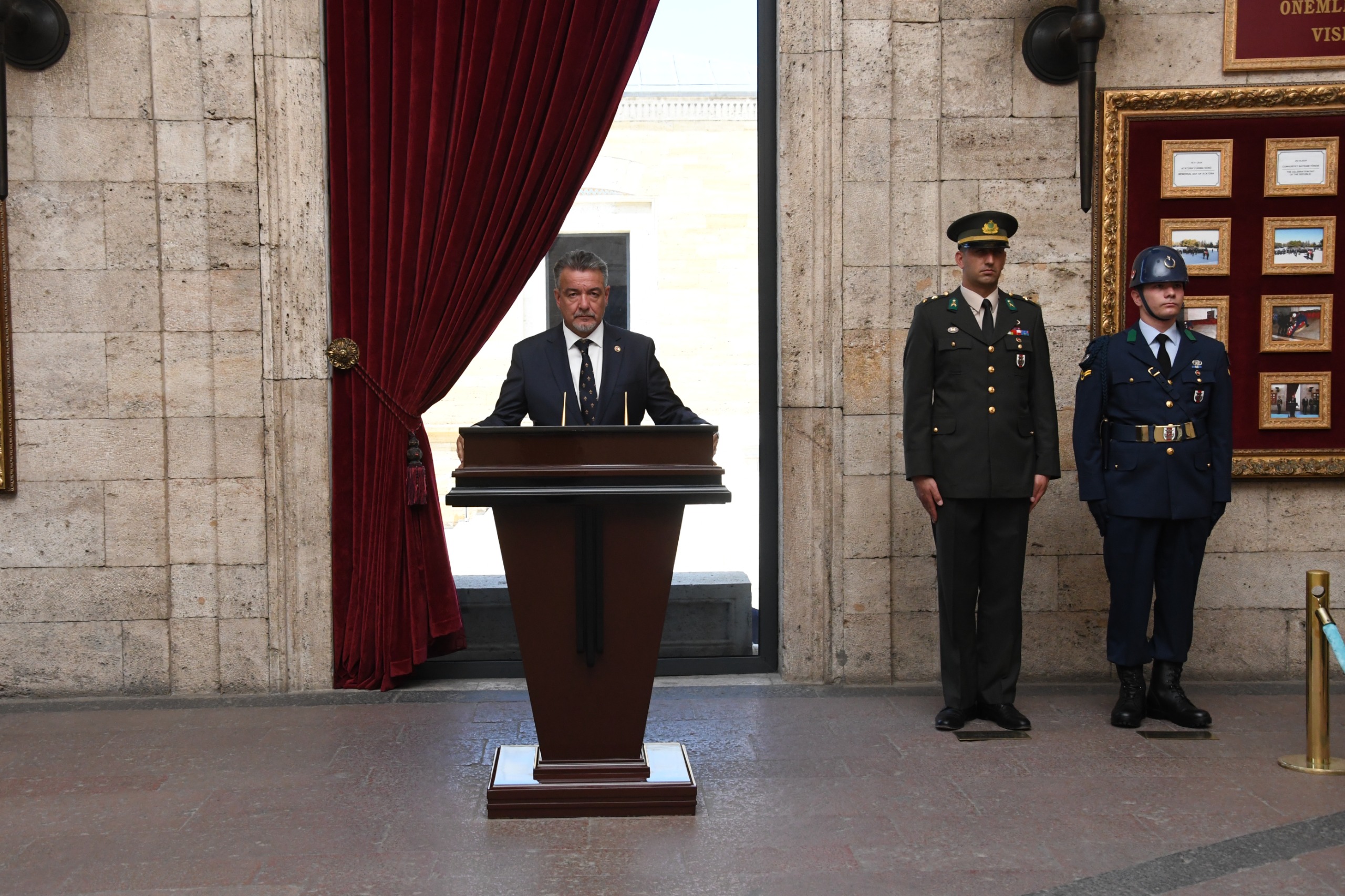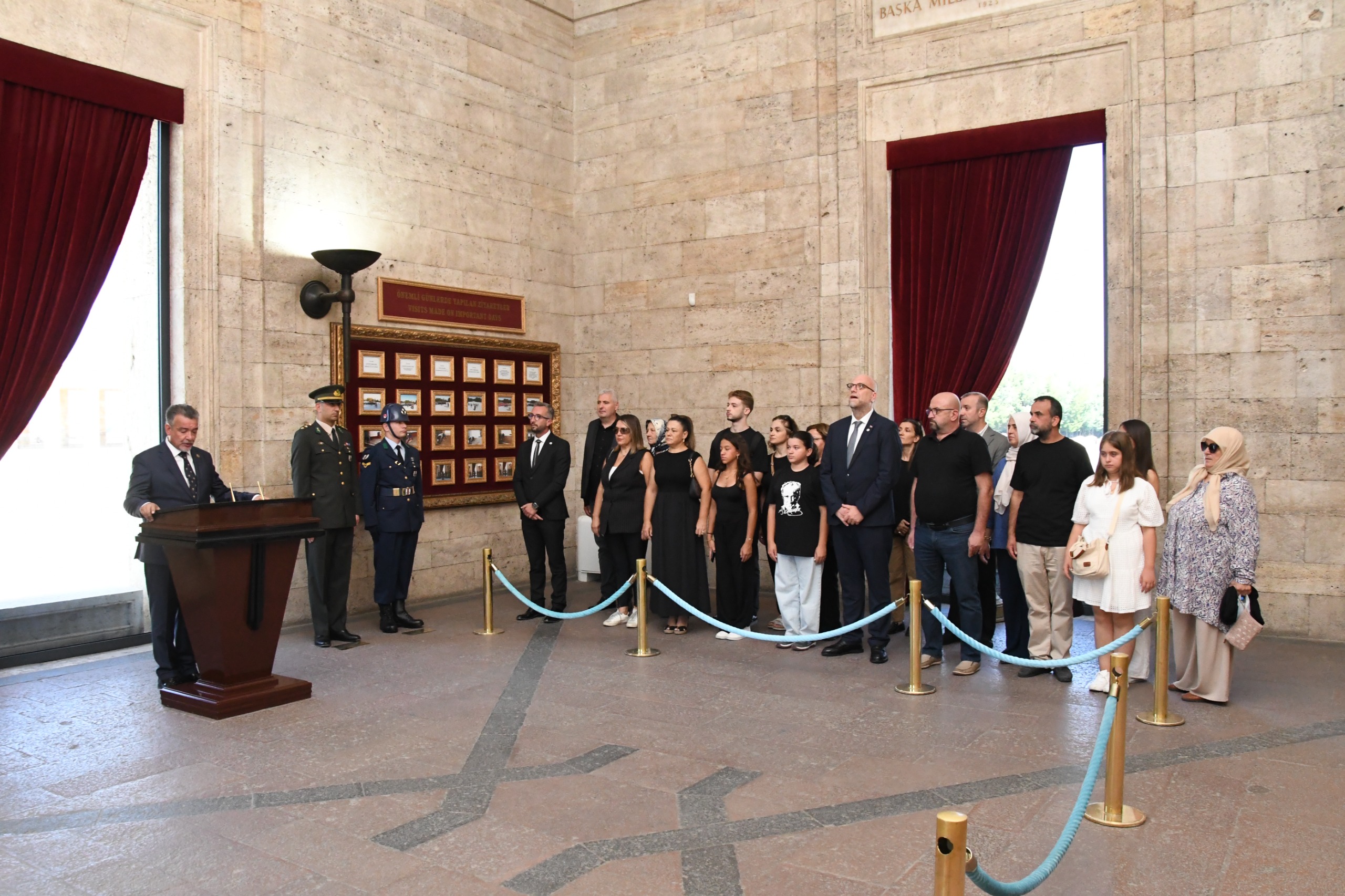 Dernek yönetim kurulu üyelerimiz, kadın kollarımız ve gençlik kolları üyelerimizden oluşan heyetimizle birlikte mozoleye çelenk sunarak, saygı duruşunda bulunduk.